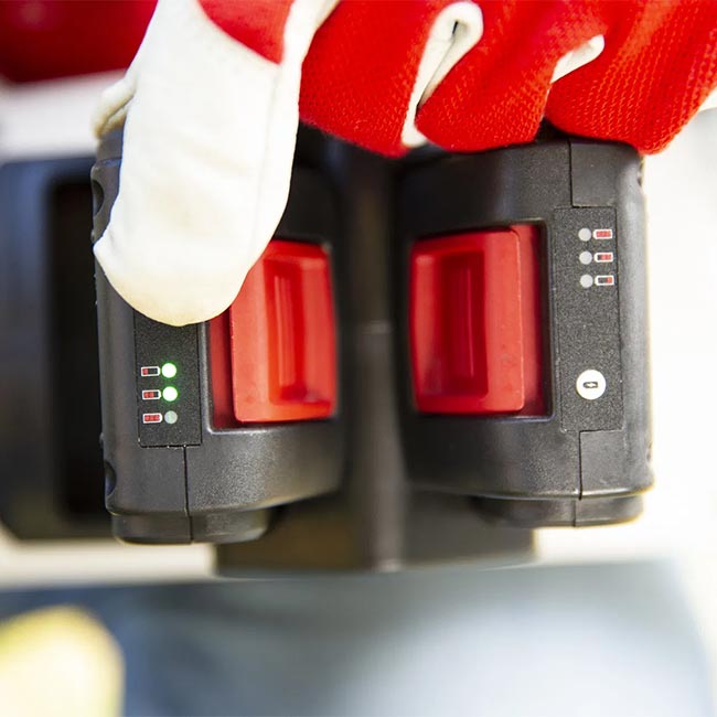 - Комплекта включва: 2 бр.батерии 20V/2Ah и 1 бр.двойно зарядно устройство.