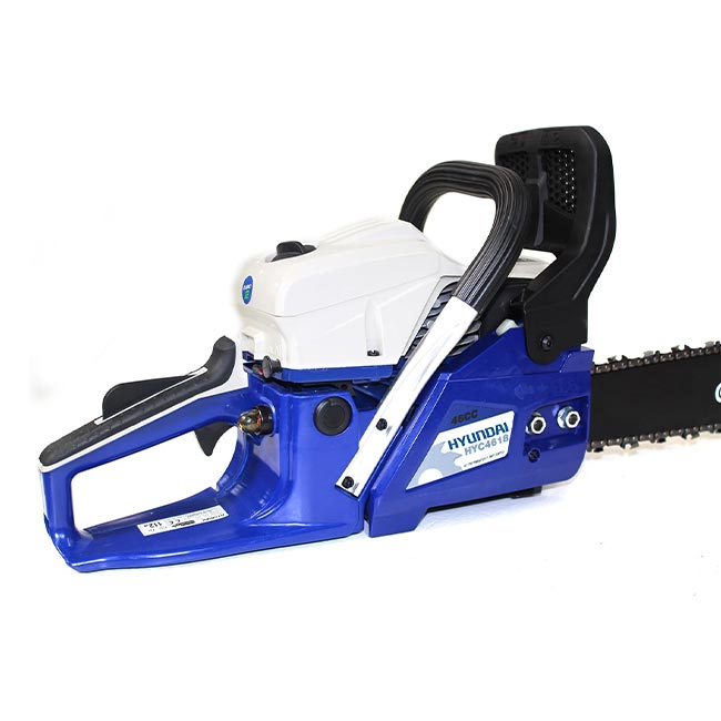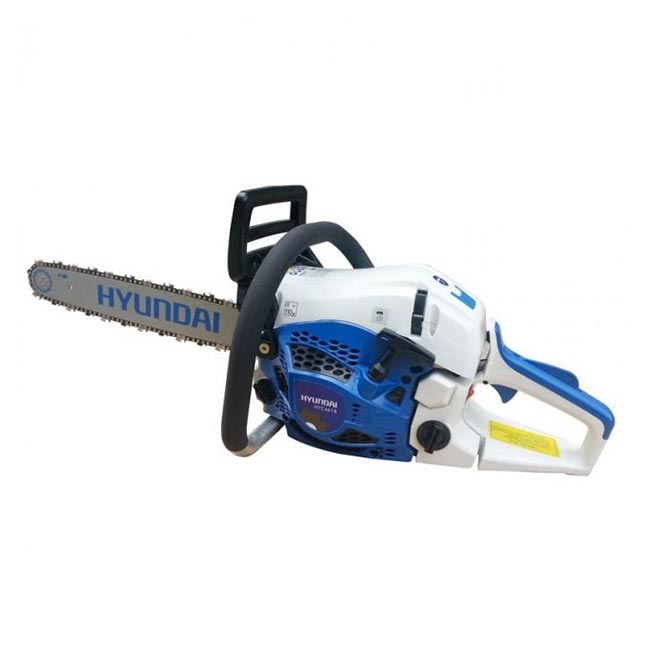 Верижен бензинов трион HYC 4618 – 1,8 kW / 45,8 куб.см HYUNDAI HYC 4618 е здрав и стабилен верижен трион от марката Hyundai, създаден за натоварена работа в градината или на терен. Със своя мощен двутактов двигател с обем от 45.8 куб.см и шина с дължина 45 см, моделът гарантира бързо и прецизно рязане на дърва с различна дебелина. Удобната конструкция и антивибрационната система осигуряват комфорт, дори и при по-продължителна употреба.