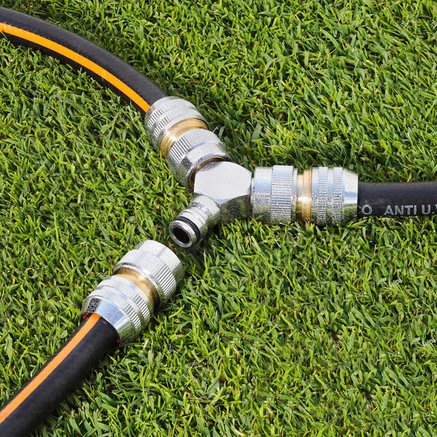 Връзката е предназначена за свързване на маркучи към поливни системи, като осигурява автоматично спиране на водата при откачване.