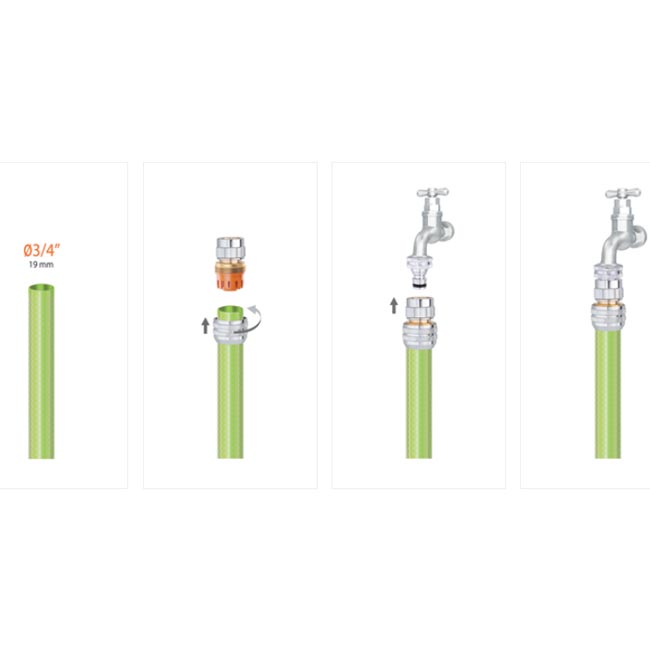 Използва се за свързване на маркучи с диаметър 3/4″ към поливни системи. Подходяща е за градински, селскостопански и професионални приложения.