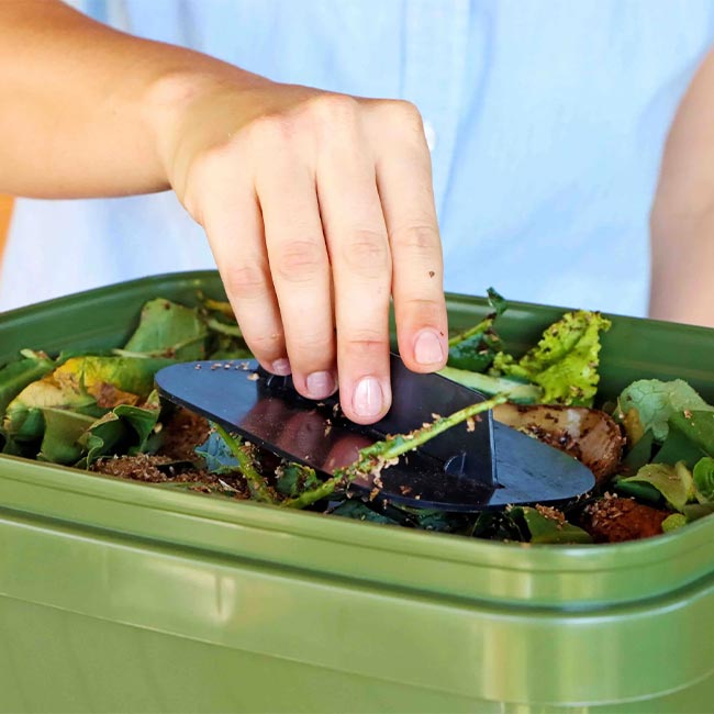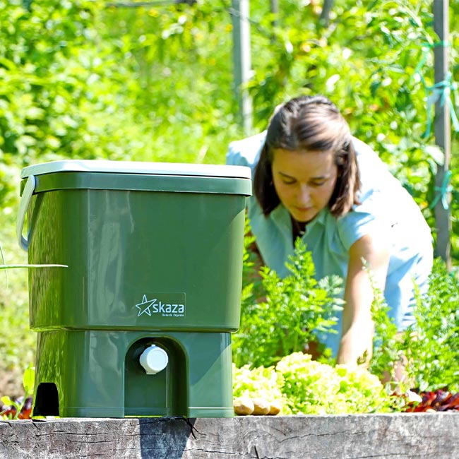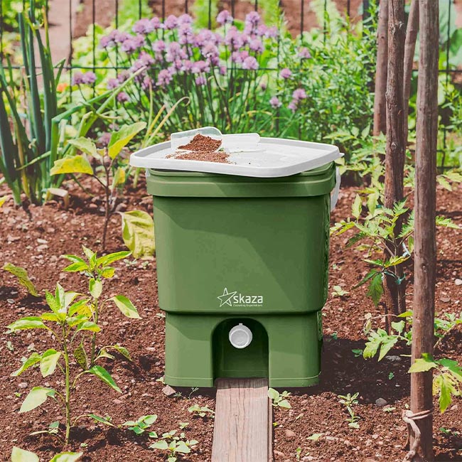 Подходящ за компостиране на кухненски отпадъци чрез ферментация с Bokashi трици. Идеален за апартаменти и малки домове.