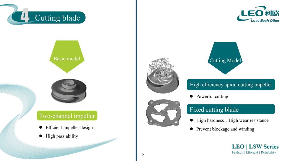 Основното и най-значимо предимство на помпата LSWm150CA LEO е вграденият режещ нож, който смила твърдите частици и предотвратява запушванията. Високият дебит и напор осигуряват бързо и ефективно изпомпване дори при тежки условия. Тя е създадена за дълъг експлоатационен живот, благодарение на класа на защита IPX8 и здравата конструкция.