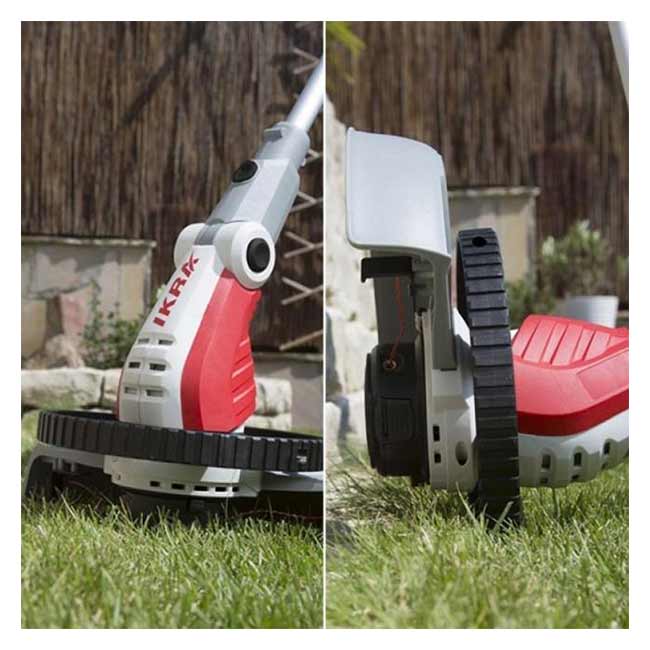Удобната количка осигурява стабилност и намалява натоварването на гърба и ръцете ви, позволявайки ви да работите по-дълго без умора. Лесно сменяемата корда и включените ножчета правят този тример изключително гъвкав и подходящ за всякакви предизвикателства във вашата градина.
