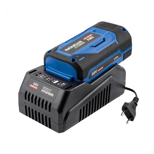 Предназначено за зареждане на всички 58V литиево-йонни батерии от серията на Hyundai, използвани в градинска и домашна техника.