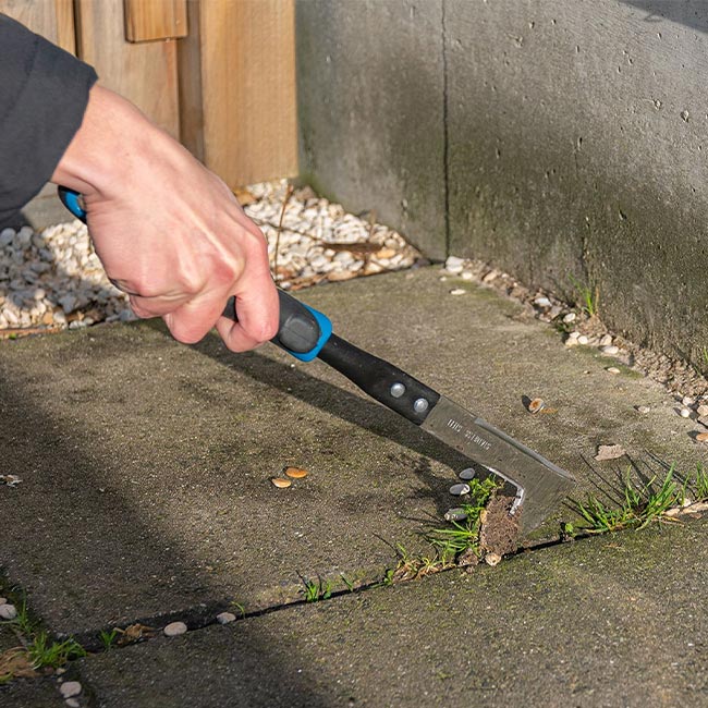 Инструментът е предназначен за почистване на фуги, премахване на плевели и поддържане на настилки в добро състояние.