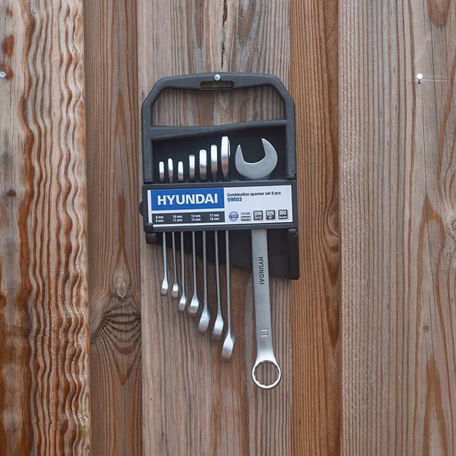 Ключове гаечни 8 части 6-22мм HY59501 к-т на Hyundai включва осем здрави гаечни ключа, изработени от хром-ванадиева стомана с сатенено покритие. Всеки ключ е прецизно изработен, за да осигури надеждност и удобство при работа. Размерите варират от 6×7 до 20×22 мм, което покрива широк спектър от приложения. Комплектът идва с пластмасов държач, който улеснява съхранението и транспортирането, като същевременно поддържа инструментите подредени и лесно достъпни.
