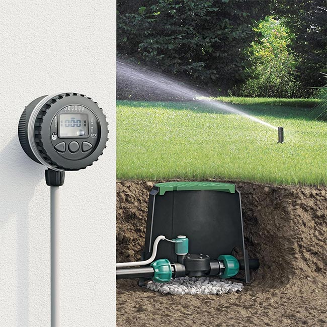 Може да работи с 2 или 4 линии според нуждите на градината. С IP68 защита устройството е надеждно дори при влага, а корпусът му е издръжлив на външни условия. С дебит от 25 литра в минута при 2.5 бара и работно налягане от 0.2 до 12 бара, то е подходящо за различни системи. Захранва се с две AAA батерии, което осигурява пълна автономност. Програматорът е разработен с акцент върху устойчивостта и лесната инсталация.