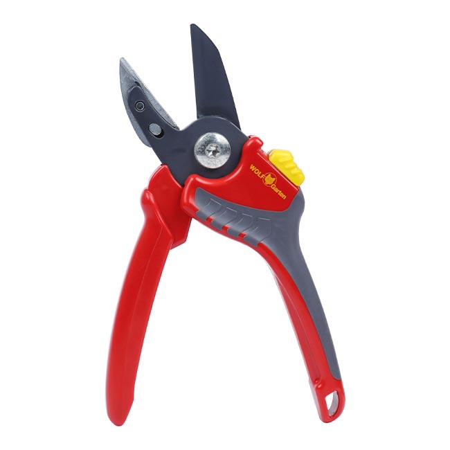 Острието с незалепващо покритие и закалената наковалня осигуряват чист и точен срез, без да увреждат кората. Ергономичните дръжки с мека гума осигуряват стабилен захват, а меките гумени буфери намаляват вибрациите.