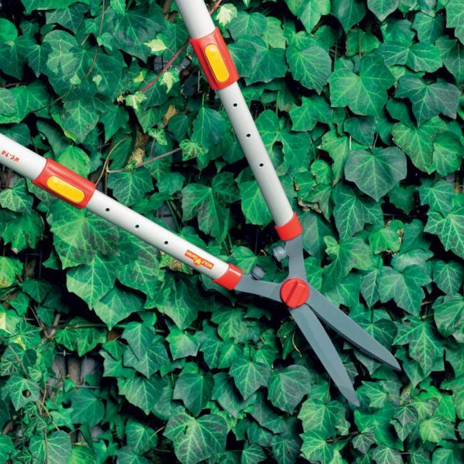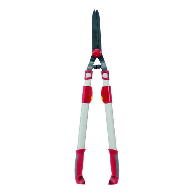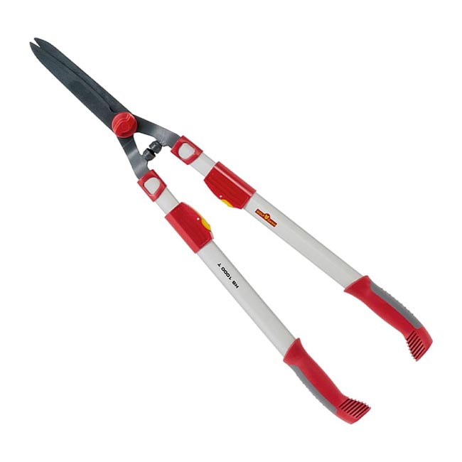 Ножица за жив плет HS-1000Т – телескопична изработена от лек, но здрав алуминий, тя е изключително удобна за работа дори при продължителна употреба. Ергономичните двукомпонентни ръкохватки с мека гума осигуряват стабилен захват и минимизират умората в ръцете. Телескопичните дръжки се разтягат от 770 до 1000 мм, което позволява достигане до по-високи храсти и плетове без нужда от стълба.
