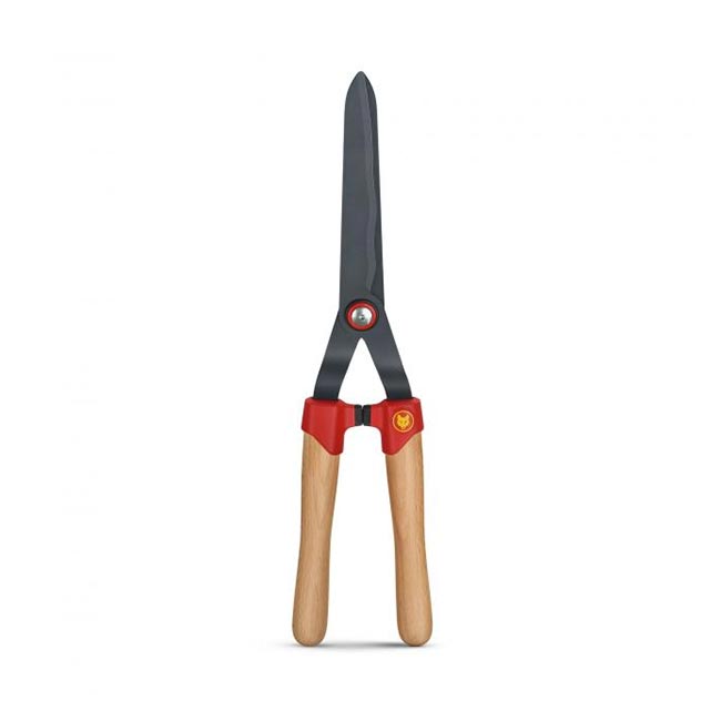 Ножица за жив плет HS-WW за стопаните, които обичат градината си подредена и красива. С дървени дръжки, които пасват естествено в ръката, и вълнообразни остриета с незалепващо покритие, този инструмент прави рязането не само лесно, но и приятно. Вграден резец за клонки и меки гумени буфери допълват усещането за контрол и комфорт при всяко движение.
