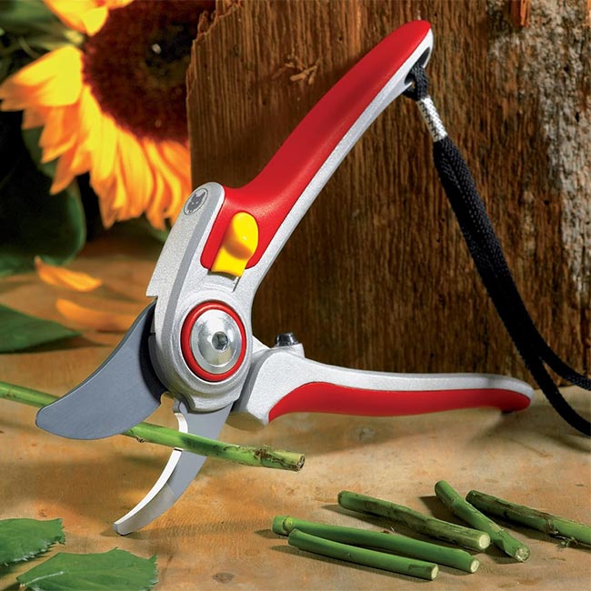 Острието с незалепващо покритие и закалената наковалня осигуряват чист и точен срез, без да увреждат кората. Ергономичните дръжки с мека гума осигуряват стабилен захват, а меките гумени буфери намаляват вибрациите.