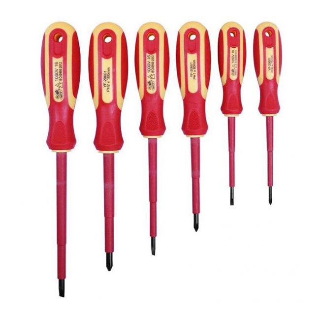 Отвертки 6 части комплект HY59403 включва шест висококачествени инструмента с хром-ванадиеви накрайници и ергономични дръжки от PP и TPE. Всеки елемент е проектиран така, че да осигури стабилен захват и прецизност при работа. Подходящ е както за професионални електротехници, така и за домашни ремонти, където качеството има значение.