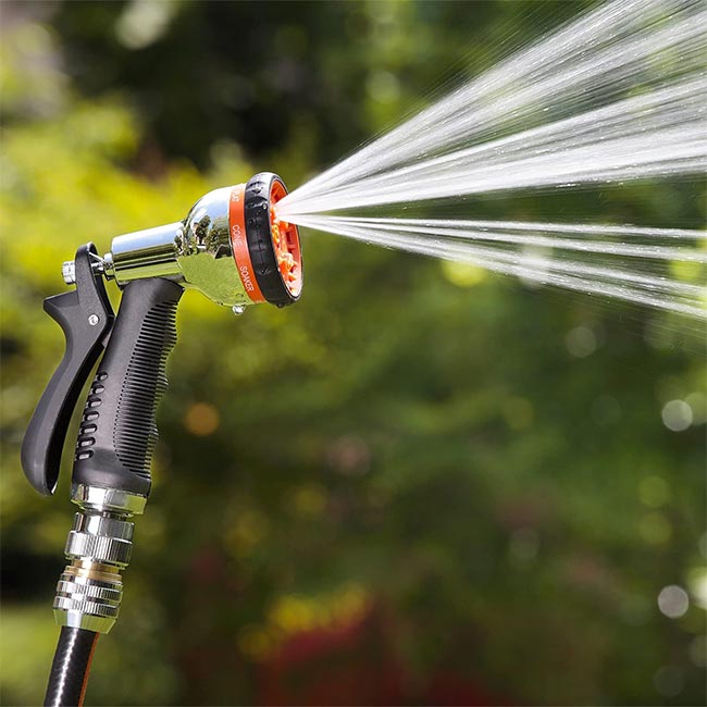 Независимо дали поливате растения, миете градински мебели или почиствате терасата, възможността за избор между осем различни струи осигурява пълен контрол. Конструкцията е здрава и надеждна, а материалите са внимателно подбрани, за да издържат на времето и интензивната употреба. Това е продукт, който успешно комбинира функционалност и стил, без да прави компромиси с качеството.