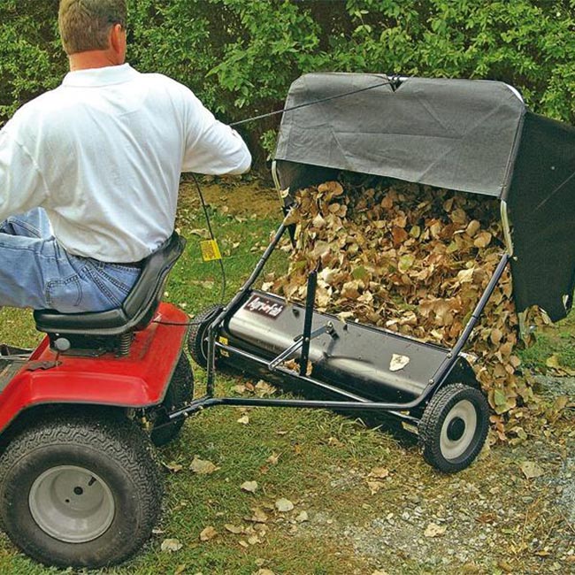 Този модел е съвместим с повечето косящи трактори и се прикачва без нужда от инструменти. Подходящ е както за частни дворове, така и за по-големи терени като паркове или спортни игрища. С него почистването се превръща в удоволствие, а не в досадна задача.