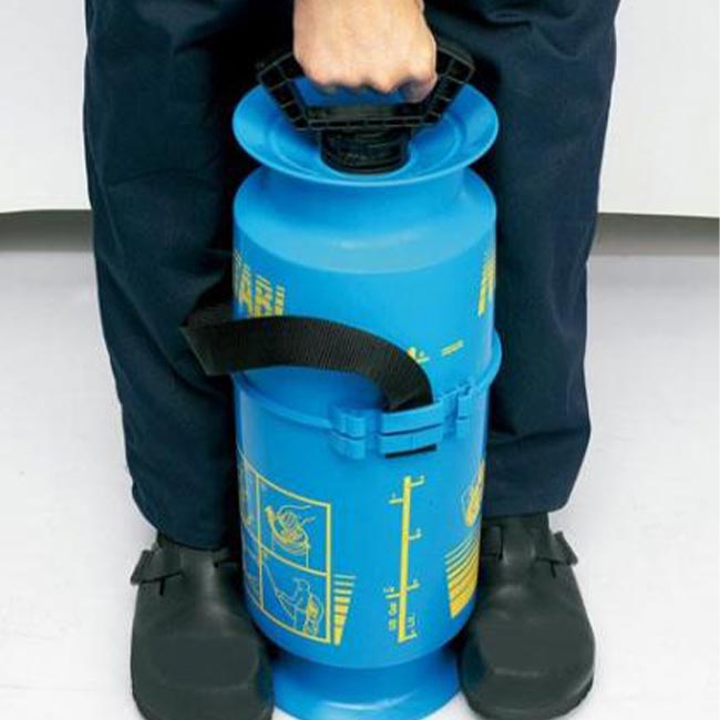 Оборудвана е с двукомпонентен маркуч с дължина 1.8 м, регулируеми дюзи, манометър, предпазен клапан и конектор за сгъстен въздух. Голямата фуния прави пълненето лесно, а стабилната основа и опората за крака осигуряват удобство при употреба. Презрамката за носене позволява лесно транспортиране, дори когато резервоарът е пълен.