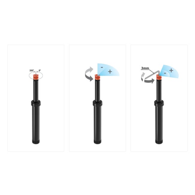 С помощта на специалната дюза разпръсквачът осигурява равномерно покритие без спад в налягането. Изработеното от ABS тяло го прави устойчив на атмосферни влияния и механични натоварвания. Механизмът за изскачане е плавен и надежден, а компактните размери позволяват лесно и дискретно вграждане в тревната площ. С максимален обхват до 5 метра, той покрива площ до 78 м².