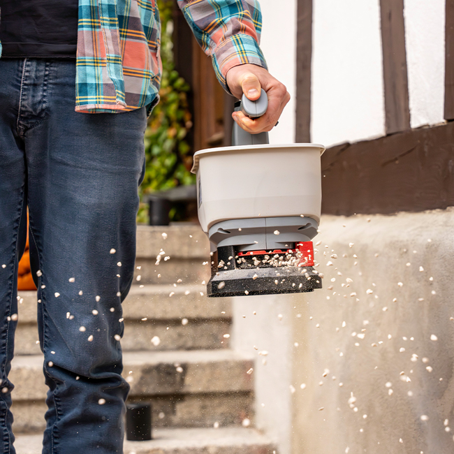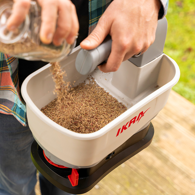 Този модел е изключително универсален и може да се използва през цялата година. През пролетта е подходящ за засяване на тревни площи и цветя, през лятото за подхранване с торове, а през зимата за разпръскване на сол или пясък върху заледени участъци. Управлението е интуитивно и не изисква специални умения. Просто напълвате контейнера, избирате настройка и започвате работа, като постигате равномерно покритие с минимално усилие.