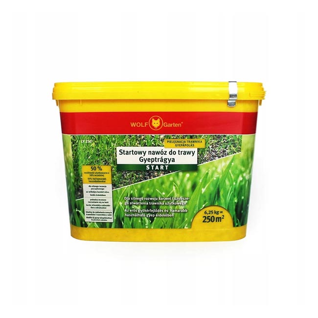 Тор за трева стартиращ LY-250 Start – 6.25 Wolf Garten е създаден специално за новозасадени тревни площи, където всяка седмица е от значение. Съставът му е богат на фосфор, което подпомага бързото развитие на корените и насърчава ранния растеж.