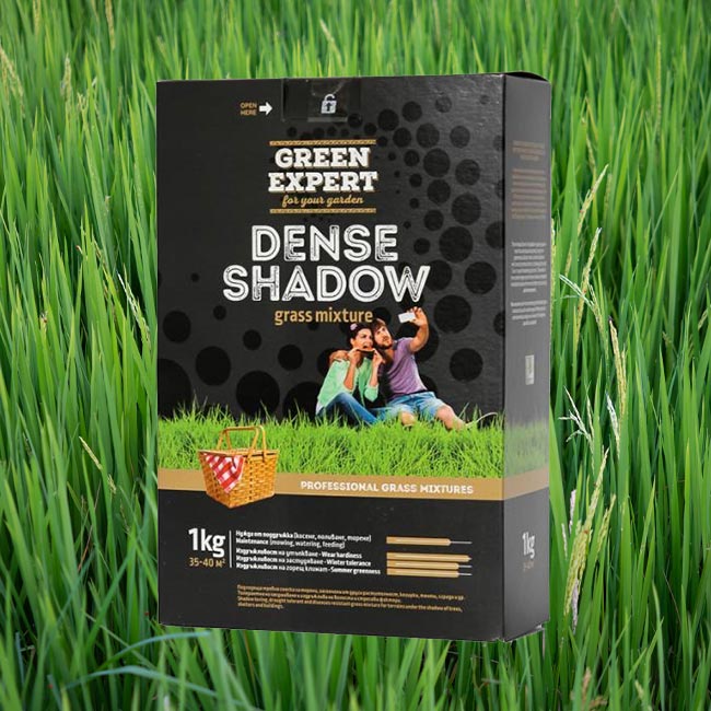 Тревна смеска Гъста сянка Green Expert 1кг за 35-40 м2 за терени, които са засенчени от растителност, сгради, навеси или други конструкции. Благодарение на внимателно подбраните сортове, тя формира гъст тревен килим с наситен зелен цвят, който се запазва през всички сезони. Смеската е устойчива на болести, засушаване и стресови фактори, което я прави подходяща за разнообразни климатични условия и почвени типове. Приспособима е към по-бедни почви и не изисква интензивна грижа.