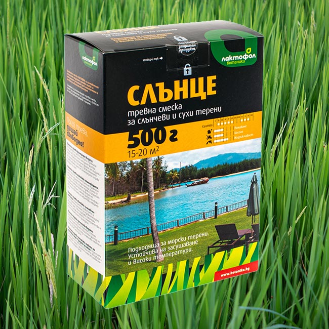 Тревна смеска Слънце Лактофол 0.5кг за 15-20м² за терени, изложени на силно слънце и сух климат. Съставена от устойчиви сортове треви, тя бързо се прихваща към различни почвени типове и запазва свежестта си дори при ограничено поливане. Идеална е за морски райони, градини без напоителна система и дворове, където слънцето е постоянен гост. Смеската е адаптирана към българските климатични условия и гарантира дълготрайна зеленина.