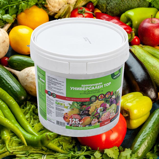 универсален тор за зеленчуци и цветя – 5 кг / 125м2 е надежден помощник за всеки градинар. С него растенията получават всичко необходимо за здрав растеж, обилен цъфтеж и устойчивост. Подходящ е за разнообразни култури и лесен за приложение.