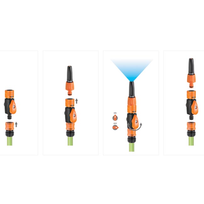 Металният корпус на струйника е устойчив на удари и температурни колебания, а гумените уплътнения гарантират надеждна и суха връзка. Монтажът е лесен и интуитивен – просто щракваш към бързата връзка и започваш работа. Компактните размери осигуряват удобство, лекота и позволяват продължителна употреба без умора през целия сезон у дома. Подходящ е за маркучи с диаметър 1/2 инча, като поддържа стабилен дебит и прецизен контрол, без излишно разхищение на воден ресусрс.