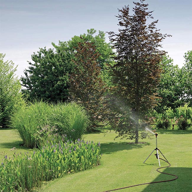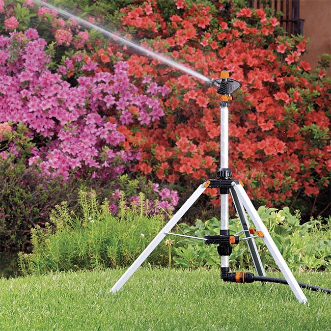 Идеален за поливане на големи площи с различна форма. Регулируемата тринога позволява настройка според терена.