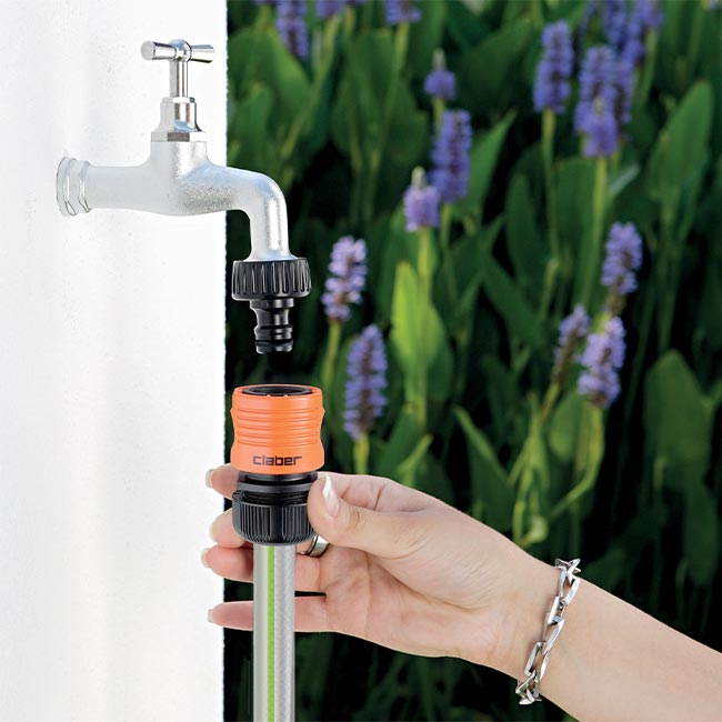 - Бърза връзка за маркуч 13/15 мм със стоп клапан