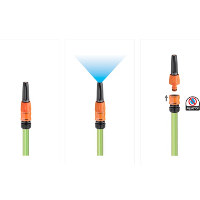 С компактния си дизайн и лесна система за свързване, струйникът е удобен за работа дори в тесни пространства. Може да се използва както за поливане на растения, така и за почистване на градински мебели или инструменти. Автоматичната свръзка осигурява стабилност и предотвратява изтичане на вода, което спестява време и усилия.